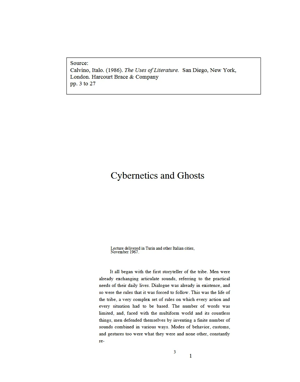 Italo Calvino - Cybernetics and Ghosts